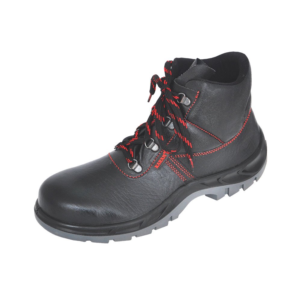 Karam Workman Ankle Black Leather Red Stitched Safety Shoes FS21